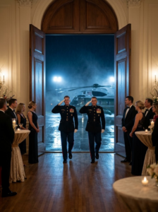 Colonel Marcus Ellison stepped out in full dress uniform—ribbons gleaming in the landing lights, bearing absolutely impeccable. He crossed the lawn with measured pace, head high, eyes locked on me with professional focus.I didn’t move. Wind tugged at my simple navy dress. For the first time that entire evening, I didn’t feel underdressed or out of place. I felt absolutely correct.